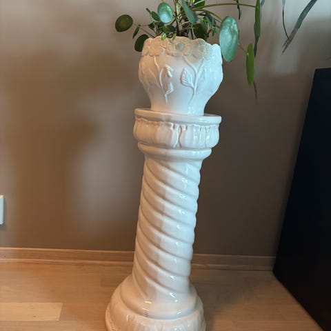 Den høyeste delen har noen små, lite synlige skår, som ikke er fremtredende i bruk eller som pynt (se bilder). Dette er tatt hensyn til i prisen.