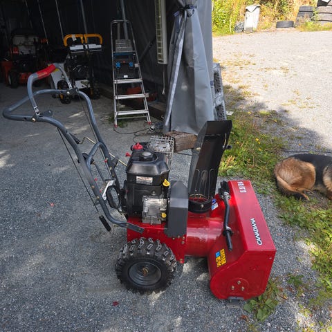 Canadiana 8.5/27 snøfreser. Utstyrt med motor på 8,5 hk fra Briggs & Stratton. Fungerte fint i fjor, men nå dauer den av ved last/motstand. Sikkert bare en bagatell. Har ikke ork å forske på hva som er feil. Snor har ryki, men funker fint på el start. Lagra inne i alle år. Selges til hbo over 2000kr som rep. Objekt innen førstk lørdag da jeg i vill frustrasjon kjøpte ny idag (siden det kom 40cm snø sånn plutselig!!)