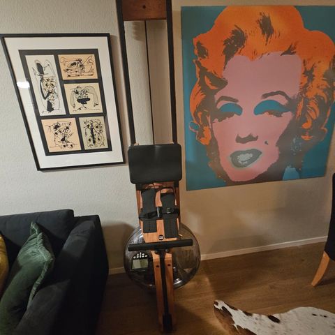 Fint og lite brukt WaterRower romaskin med vanntank. Spesielt kjekk siden man kan sette den opp etter veggen når den ikke er i bruk.