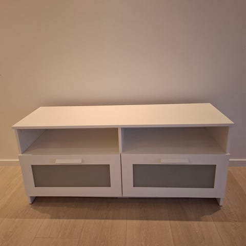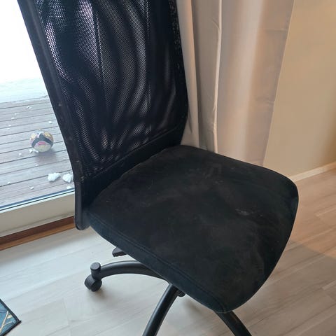 Skrivebordet har egen plate for PC eller lignende, dessuten skuff og noen hyller. Det mangler 2 hyller sammenlignet med tegningen fra Ikea.