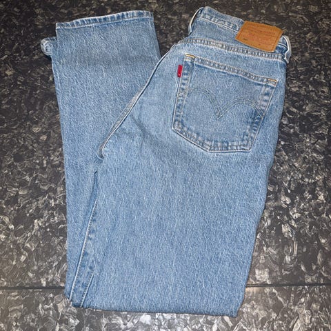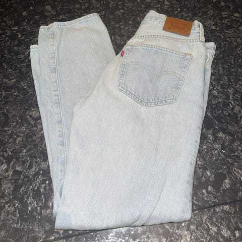 Hvit/kremfarget Levis 501 selges, omtrent kun prøvd på da den er for liten rundt midjen.