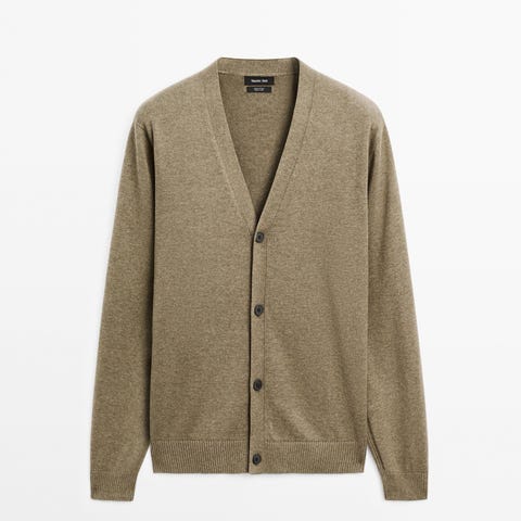Massimo Dutti Bomull-Kasjmir genser/cardigan i burgunder