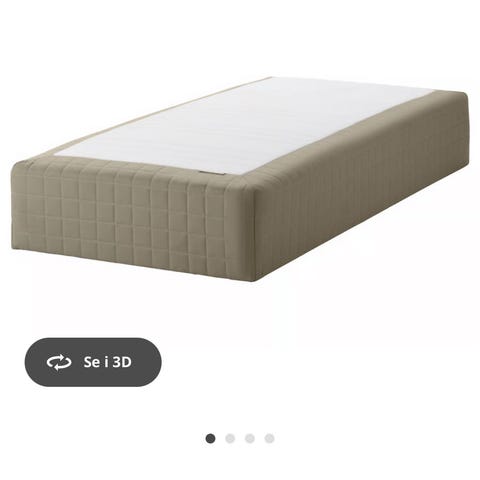 IKEA Tussöy seng med ben i beige farge. Sengen har et enkelt og funksjonelt design. Den er lite brukt og overmadrass er brukt med madrassbeskytter. Må hentes