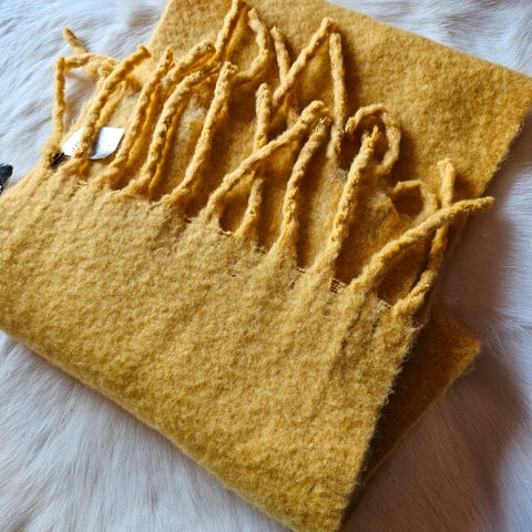 Stort, mykt skjerf i deilige farger, fra Reserved. Kun brukt et par ganger og fremstår som nytt.