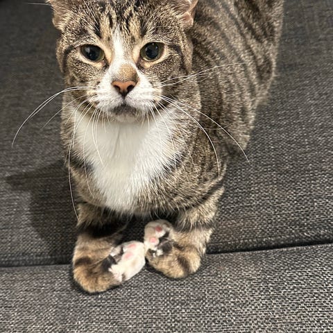 Dessverre må jeg selge verdens søteste og snilleste katt- Milo. Milo er 1 år og noen måneder. Han er født juni 2024. Han har vært med oss fra han var 12 uker og er veldig sjenert. Han trenger veldig god tid til å tilpasse seg det nye hjemmet, men når han først har tilpasset seg så vil han aldri forlate din side og snakker med deg fra morgen til kveld. Jeg skal flytte snart og har ikke mulighet til å ta med han videre. Kontakt meg for mer info.