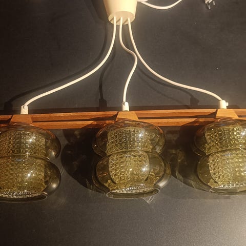 Dekorativ taklampe i metall. Ny pris da jeg kjøpte den var ca kr 800. Høyde 25 cm. Må monteres i strømuttak i tak, eller man må sette på ledning med bryter. Glanset/emaljert metall.