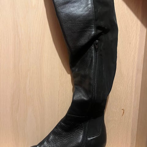 Sorte skinnstøvletter selges.