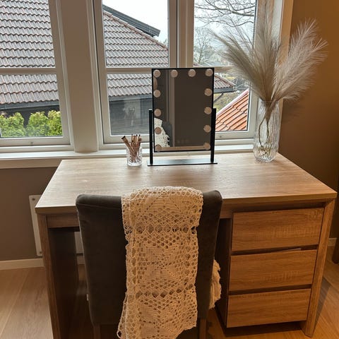 Selger et fint og praktisk skrivebord som kan kjøpes med eller uten påbygg. Har noen synlige bruksmerker. 500 kr for bare skrivebordet, og 200 kr for overbygget i tillegg. Har ikke bildet av overbygget da det ble tatt ned for en stund siden og er plassert i boden, men ser ut som på bildet fra ikea.