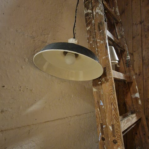 Arkitektlampe i metall med justerbar arm og rund lampehode