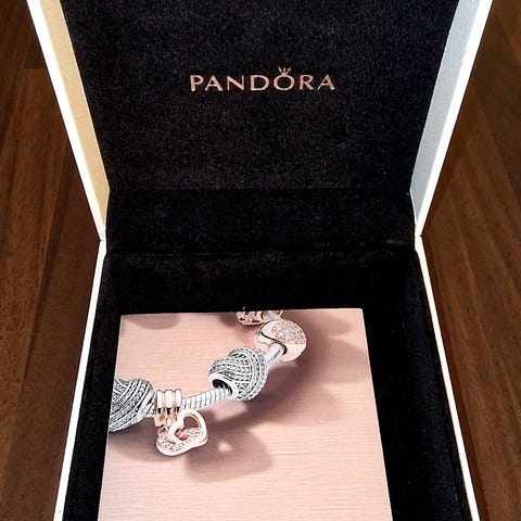 En hjerteformet rød menneskeskapt krystall er plassert midt på ringen, omgitt av funklende pavé i rammen og langs forsiden av båndet.