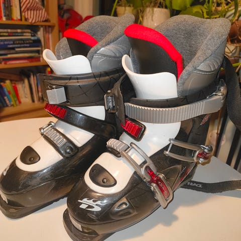 Pent brukte slalomstøvler - finner ikke størrelsesangivelser, men kan være ca 39.