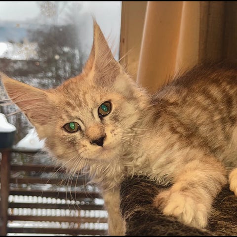 Maple er en livlig, leken og sjarmerende katt som elsker kos og gode godbiter. Samtidig er hun litt forsiktig av natur og trenger tid til å bygge trygghet og tillit. Jeg hentet henne da hun var rundt 6 måneder gammel, og jeg fikk dessverre ikke gitt henne den starten jeg ønsket. Det har ført til noen utfordringer, særlig når det gjelder stell og håndtering, men dette er noe en tålmodig og forståelsesfull eier kan jobbe videre med i sitt eget tempo.