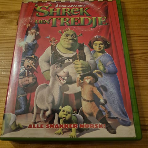 DreamWorks Shrek Den Tredje DVD med animasjonsfilm. Produktet inneholder filmen Shrek Den Tredje fra DreamWorks.