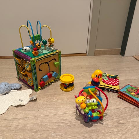 Nesten ubrukt babyleke til å kaste ball i en «ballkarusell».