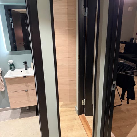 IKEA speil i enkel design. Speilet har en rektangulær form og passer til bruk i soverom, gang eller andre rom som trenger et funksjonelt speil. Fargen på rammen er nøytral og tilpasset ulike interiørstiler.