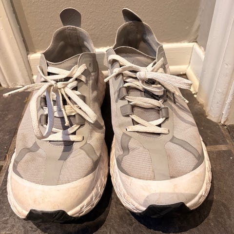 Jeg må dessverre selge disse turskoene da de er for trange. De er kun brukt på noen korte fotturer og en litt lenger (og dessverre noe gjørmete) fottur på 7 km. De er skylt av, men ikke forsøkt vasket i maskin og har derfor en del flekker. Ellers ingen annen slitasje.
