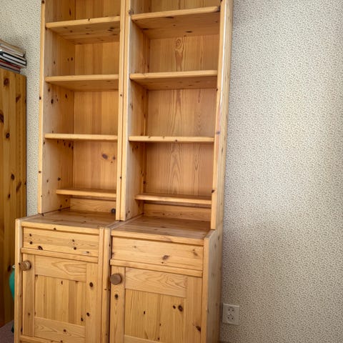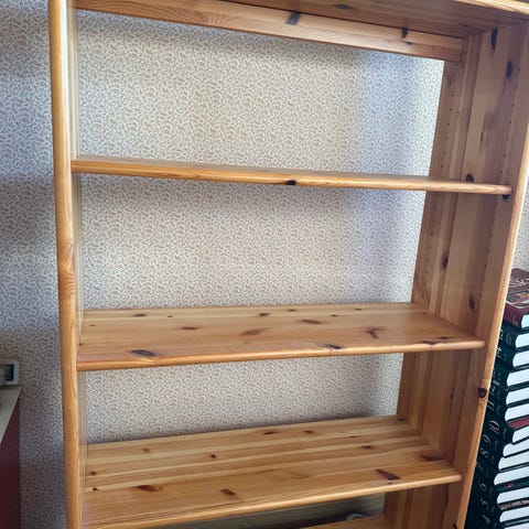 Siste sjanse? Hylle/reol på hjul. Furu lakkery og sølvfarget detalj