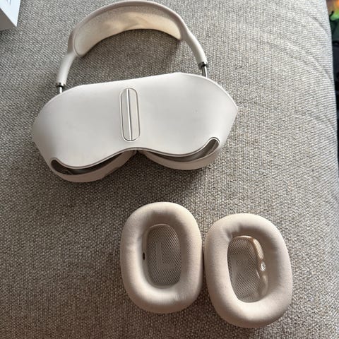 Apple AirPods Max hodetelefoner. Over-ear design med polstrede øreputer for komfort. Laget med materialer som gir god lydisolasjon og lydkvalitet. Passer for bruk med Apple-enheter og andre kompatible enheter.