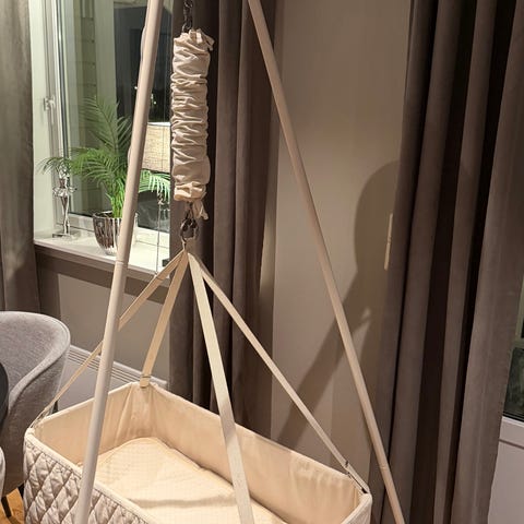 Se bilder for noen få kosmetiske merker på selve køyen. Denne er håndvasket i henhold til produsentens veiledning og er klar for neste eier. Både vi og forrige eier har brukt beskyttelse når barnet har ligget i vuggen, så ingen barn har ligget direkte på stoffet.