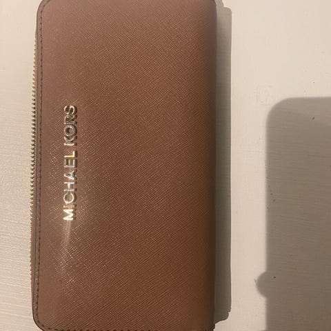 Michael Kors lommebok i brun. Lommeboken har glidelås og flere rom for kort og sedler, laget i skinnmateriale. Pris kan diskuteres.