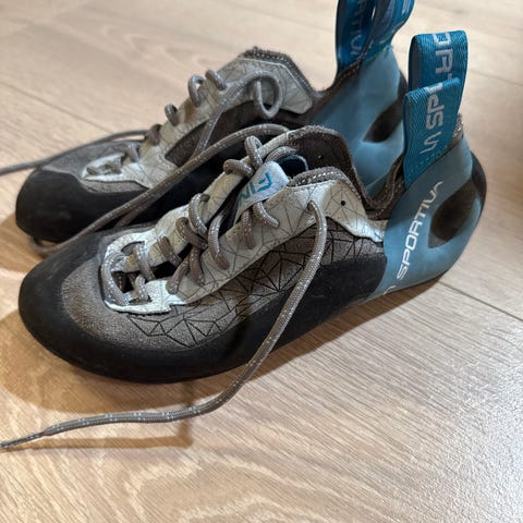 Selger disse klatreskoene i størrelse 39,5! De er lite brukt og nesten som nye! Bare å sende melding om du har noen spørsmål :) Pris kan også diskuteres!