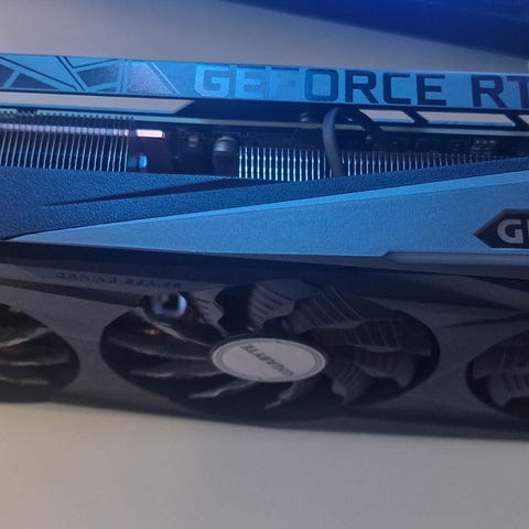 Gigabyte Eagle GeForce RTX 3080 Ti skjermkort med 12 GB GDDR6X-minne. Skjermkortet har tre vifter for kjøling og er designet for høy ytelse i grafikkintensive applikasjoner og spill.