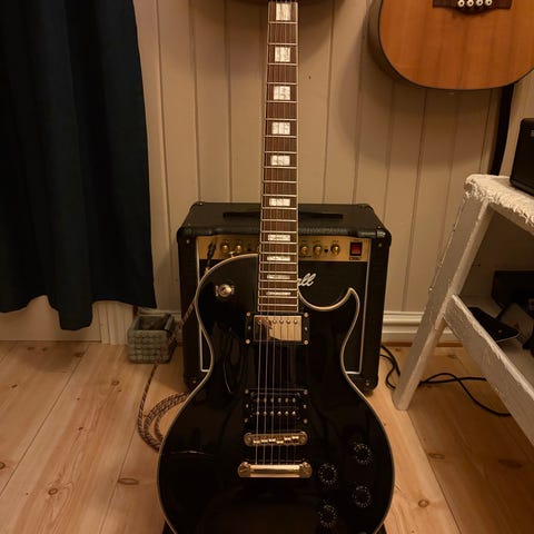 Selger min venstrehendt el-gitar, siden den ikke brukes lenger. El-gitaren og forsterkeren er brukt en del, men funker fint. Jeg selger også gitarbagg.