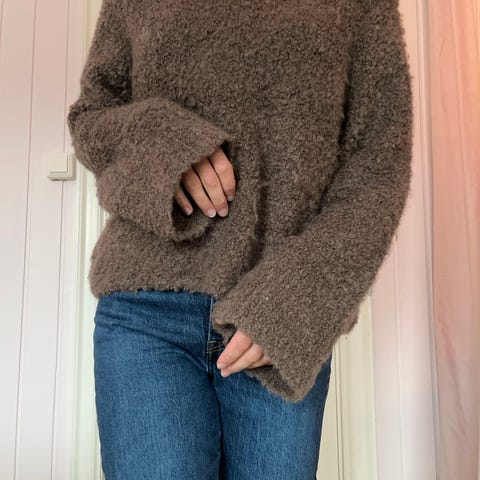 Genser i brun farge, laget av mohairull. Passer kvinner i størrelse One size.