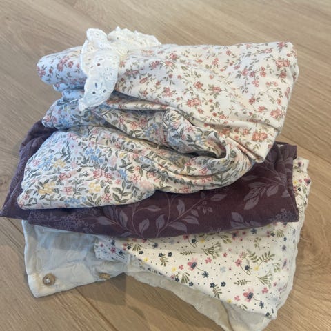 Klespakke, 3 bodyer, 1 bukser, 2 gensere, 1 tights