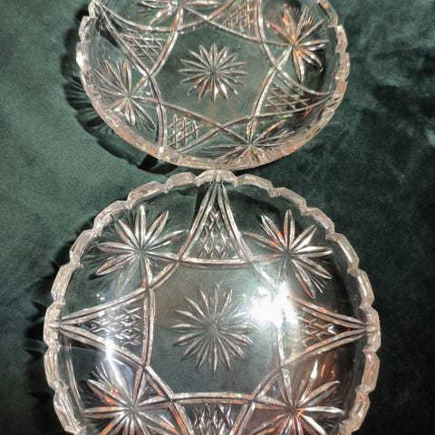 Nydelig gammelt skål i metall, sølvplett? Ser ikke stempel. Original glass innlegg, tung og kraftig glass. Ingen skår på glass. Pakker veldig godt og sende med extra porto.