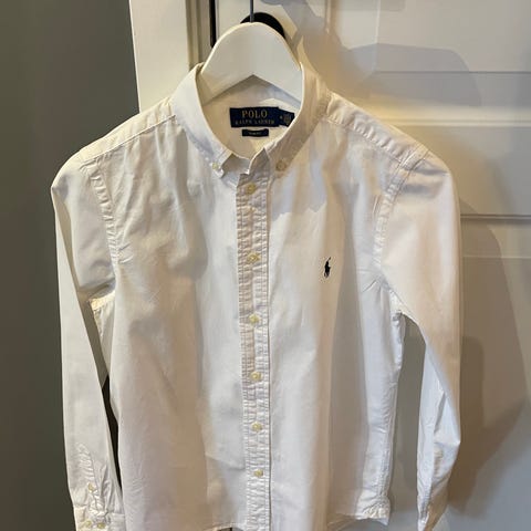 Ralph Lauren skjorte i størrelse 164/14 for gutt. Skjorten er hvit og laget av bomull.