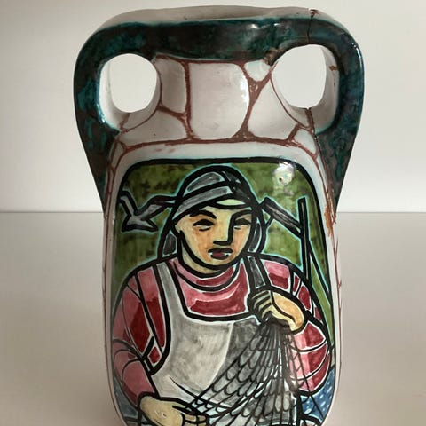 2 stk Bjørn Wiinblad figurer laget i porselen med blå og hvit dekor. De har begge noen avskallinger og den ene er også limt i armene. Meget dekorative. Signert på under siden. Laget 1986. Selger de samlet for kr 1200.- Disse bør koste 3000.- -4000.- pr stykk om de er hele !!