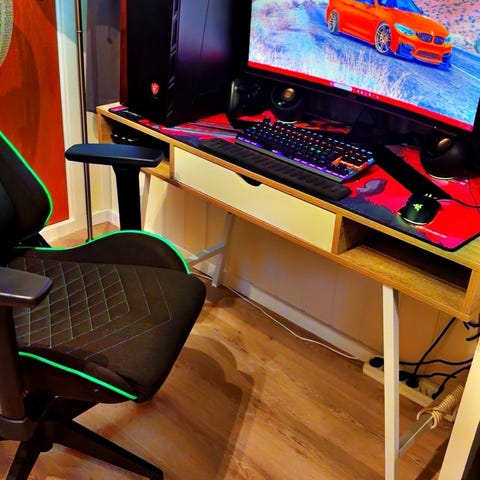 Fremstår helt, pent og stødig, men har noen små bruksmerker på bordplaten.