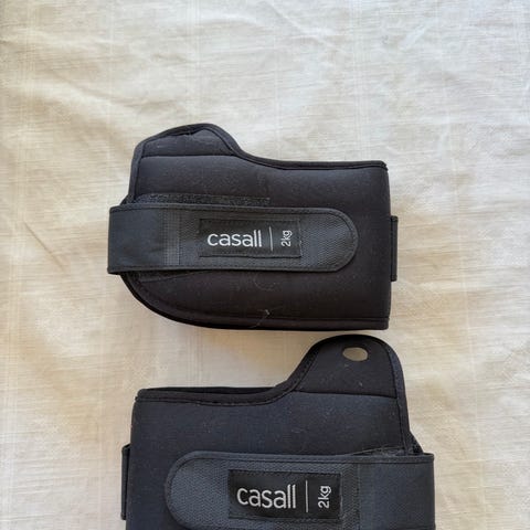 To stk 1kg vekter som kan festes rundt armer eller ben for lette øvelser/rehabilitering.