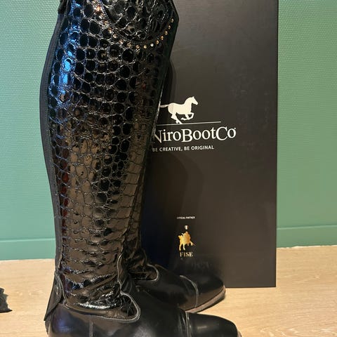 Helt nye ridestøvler fra DeNiroBootCo. Svarte skinnstøvler i str 36. De er store i str. Mål bak kneet er 44cm og vidden rundt leggen ca 30cm. Selger da de dessverre ble for store for meg. Ny pris er 3999kr.