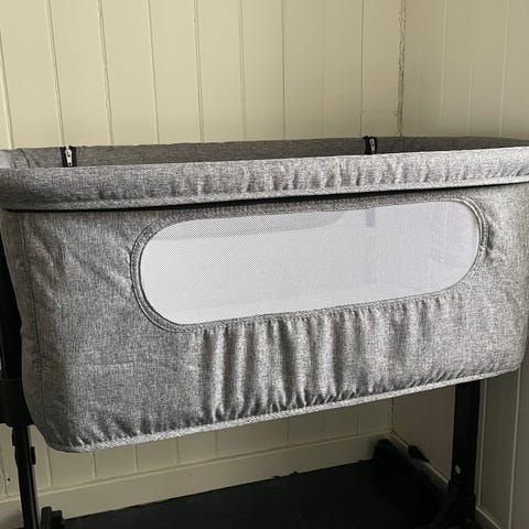 Selger en Moweo Bedside crib babyseng fordi babyen våres klarer å sove nå i sin egen seng.