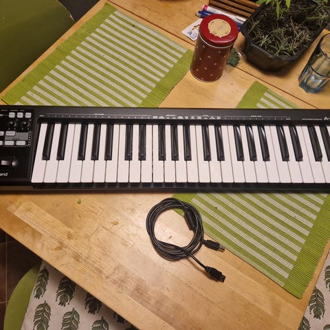 Selger dette Roland A-49 MIDI keyboardet kjøpt 4Sound Juli 2025. Keyboardet er i kjempegod stand bortsett fra en liten sprekk ved knappene som vises i bilde 2. Keyboardet har ikke blitt mye brukt.