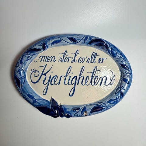 Bing & Grøndahl Påskeplatte fra 1914. Tallerkenen har dekor med påsketema i blått og hvitt. For veggoppheng. 19cm. Flott kvalitetsplatte.