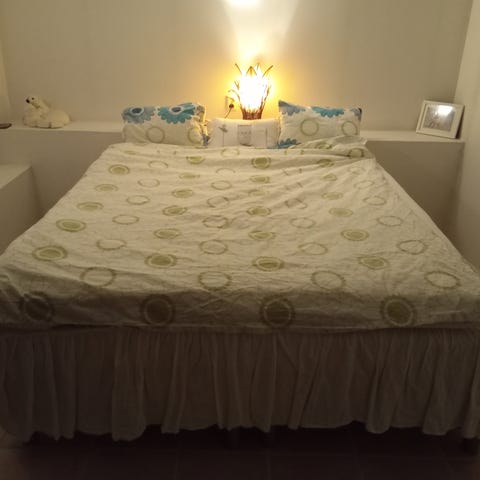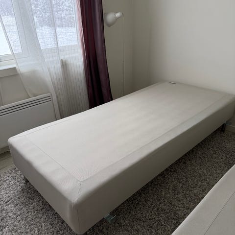 Skeidar dobbeltseng kjøpt ny i 2019. Sengen har en nøytral farge på madrassen. Egnet for en eller to personer.