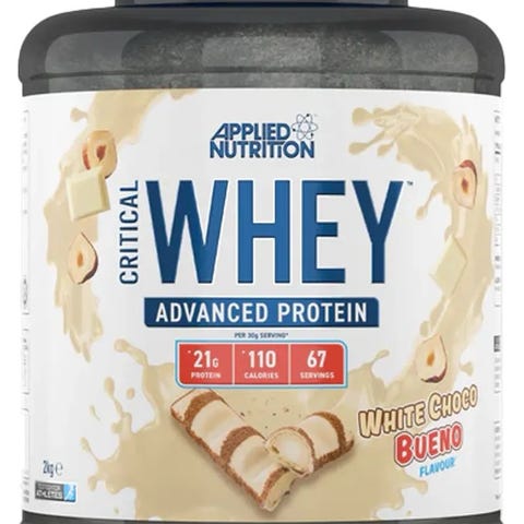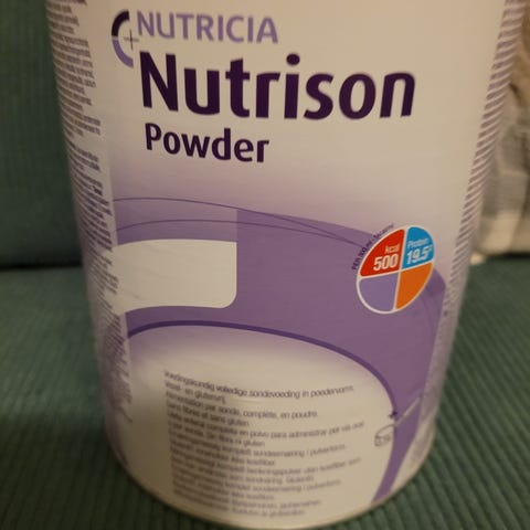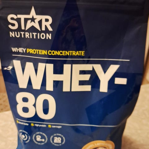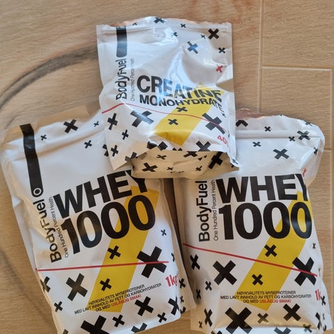 Selger denne boksen med proteinpulver, med en smak av french vanilla creme.