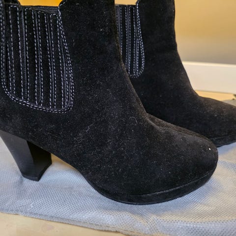 Svært pent brukte støvletter. Har stått på kontoret mitt og ikke blitt brukt på en stund, selger derfor. Svært behagelige å gå i. Skoene har glidelås på innsiden for enkel på- og avtaking. Passer til daglig bruk og ulike anledninger. Farge mørk brun. Jeg er normalt størrelse 38, men disse sitter fint på.