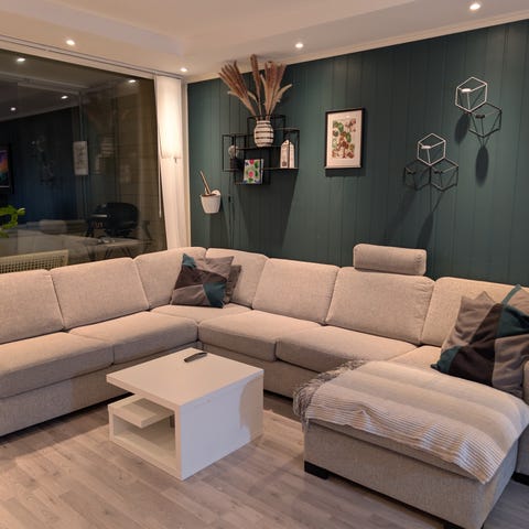 Sofaen er komfortabel å sitte i samtidig som den ser bra ut!