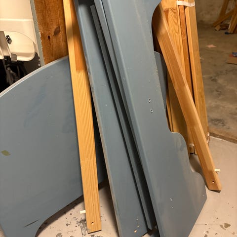 Hel og fin, madrass kan følge med. Mer mørkblå enn grå. Selges pga flytting. Beklager litt dårlige bilder, mulig med nye om ønskelig.