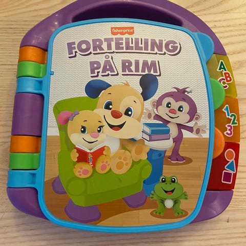 L150. Elektronisk bok «fortelling på rim» Musikk og sang som skifter hver gang man blar. Fisher Price. Pent brukt. 85kr (D)