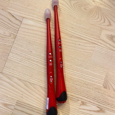 L457. Elektroniske trommestikker m/masse ulike lyder, typer slag og lys. Av/på knapp. Fin stand. Top toy. 125kr