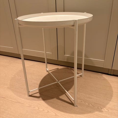 Selger et søtt hvitt nattbord/sidebord da min datter ikke bruker den lengre. Skuffen er ikke på skinner, kun spor av tre, så den er litt treg å åpne, men ikke sånn at det er vanskelig☺️ Noen små bruksmerker.