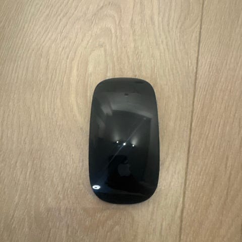 Apple Magic Mouse trådløs mus i svart farge. En mus med berøringsflate som støtter multi-touch-bevegelser.