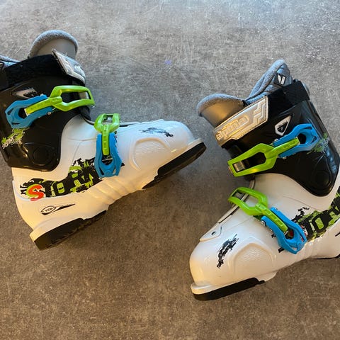 Tecnica alpinstøvler 253mm. Støvlene har tre spenner for justering.
