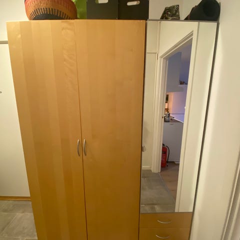 Skapet er ca. 200 cm høyt og 50 cm bredt, og passer perfekt til gang, soverom eller bod.