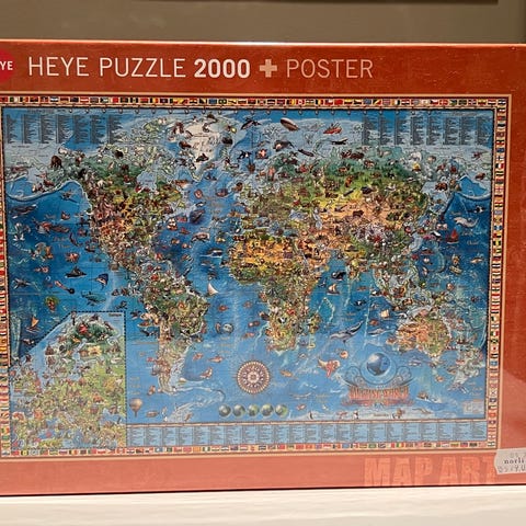 Ravensburger Puzzle med 1000 brikker. Puslespillet har et motiv som består av flere små bilder og tekster i ulike farger og stiler. Egnet for voksne og eldre barn som liker puslespill med høy detaljrikdom.
